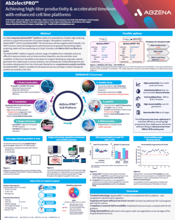 The AbZelectPRO platform supports a diverse range of modalities from antibodies and more difficult-to-express proteins such as fusion proteins, bispecifics, vaccines and other novel